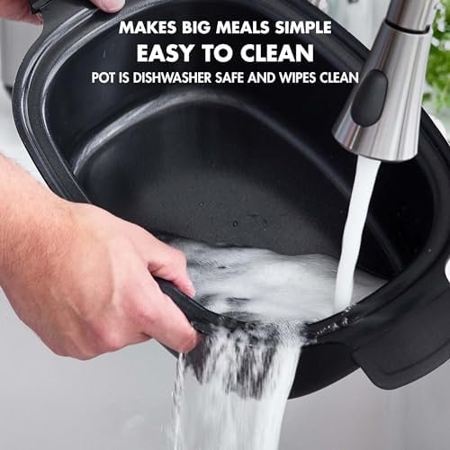 The spacious 6-quart capacity ensures you plenty of room to take on family-sized meals, potlucks, and big batches. It’s enough to feed a crowd, prep meals for a week, or make huge meals packed with flavor. The 6QT design fits whole chickens or roasts and can make a massive chili for up to 12.