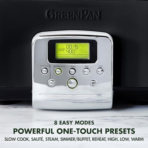 8 POWERFUL ONE-TOUCH PRESETS: Slow Cook, Sauté, Steam, Simmer/Buffet, Reheat, High, Low, Warm