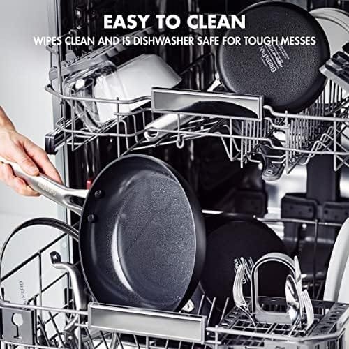 Metal utensil safe, this collection’s diamond-reinforced coating is incredibly durable