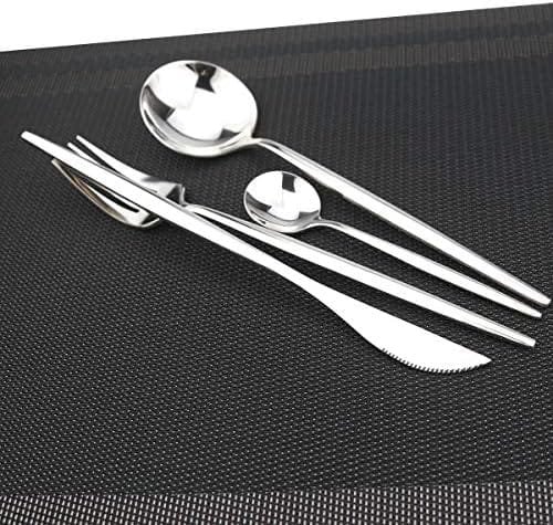 【High Quality Utensil Set】 This silverware set is made of 304 (18/8) standard high quality stainless steel,durable and it can keep shiny for long time.Mirror finished surface,smooth edges without rough spots,ergonomic shape, suitable for daily use.Easy to clean, dishwasher safe.