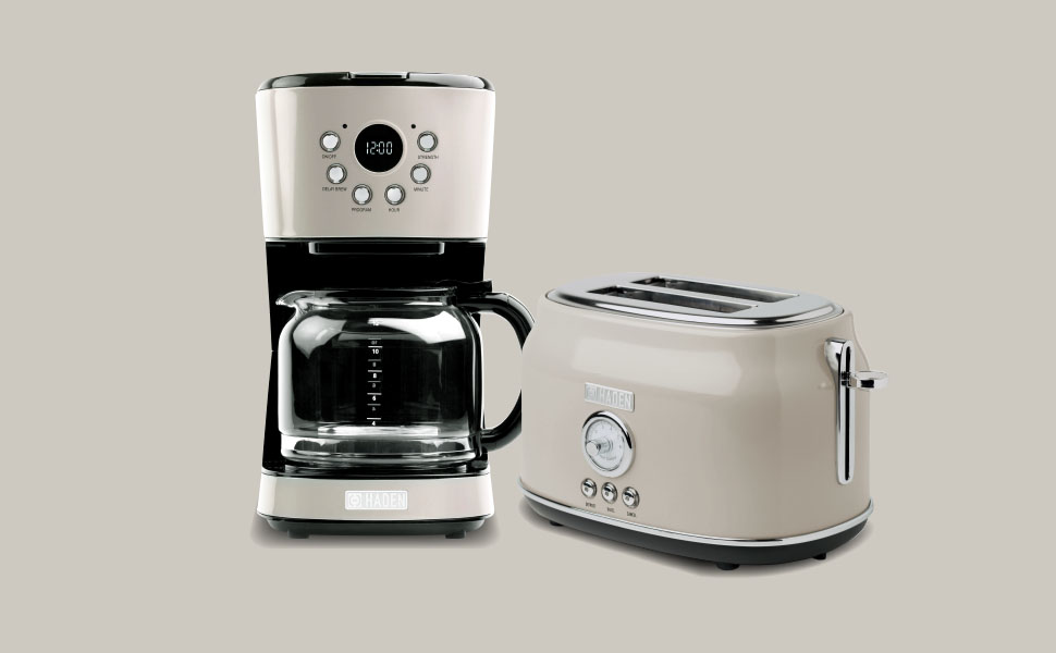 Programmable and fully automatic coffee maker with a large 12-cup capacity carafe for a hot cup of coffee any time of the day; Features an adjustable delay-brew setting and brew strength select