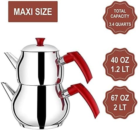 Keywords: Tea Pot Set, Hakan Stainless Steel, Double Bondy, Turkish Kettle Samovar Style, Teapot Set, Self Strainer, Bakelite Handle, Tea Kettle, Loose Leaf Tea, Turkish Tea, Tea Brewing, Tea Enthusiast, Modern Functionality, Traditional Aesthetics, Elegant Design, Durability, Convenience, Timeless Piece, Kitchenware, Tea Accessories, Tea Rituals, Flavorful Experience, Tea-drinking Experience.