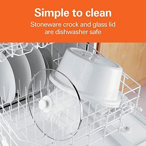 The removable stoneware crock and glass lid are dishwasher safe and easy to clean. The crock can also be used in the oven or microwave.
