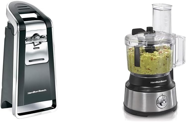 Hamilton Beach (76606ZA) Smooth Touch Electric Automatic Can Opener with Easy Push & Food Processor & Vegetable Chopper for Slicing, Shredding, Mincing, and Puree, 10 Cup