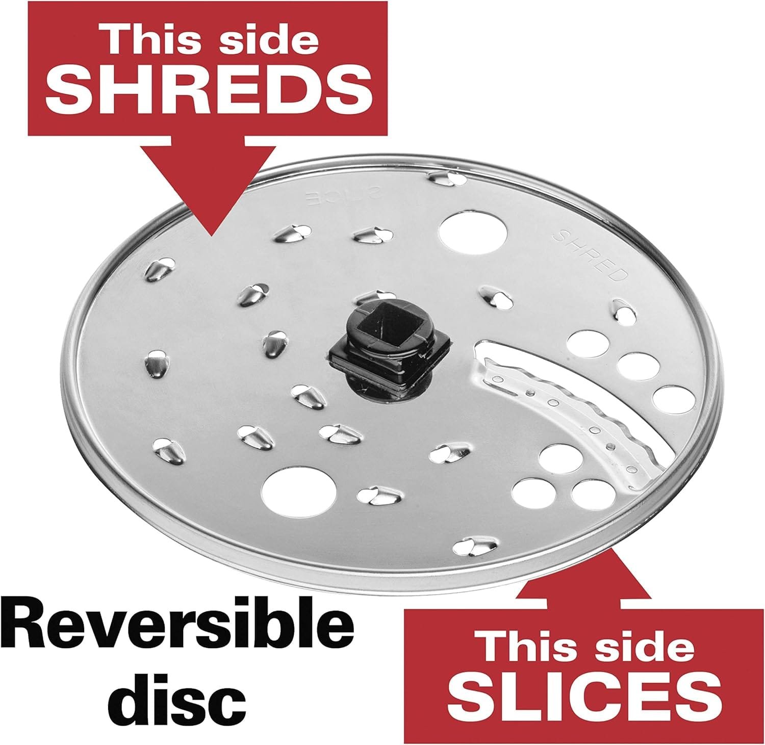 Product 2: Versatility of a food processor, food chopper and vegetable chopper: Reversible stainless steel disc slices and shreds, while the stainless steel s-blade chops, mixes and purees