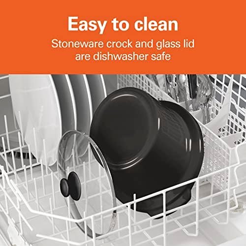 The removable stoneware crock and glass lid are dishwasher safe, and the touchpad easily wipes clean.