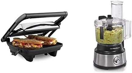 Hamilton Beach Electric Panini Press Grill, Medium & Food Processor & Vegetable Chopper for Slicing, Shredding, Mincing, and Puree, 10 Cups – Bowl Scraper, Stainless Steel