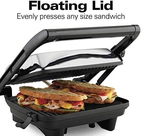 Hamilton Beach Electric Panini Press Grill. This sleek and innovative appliance turns ordinary sandwiches into gourmet delights. Achieve culinary perfection with even cooking, a golden brown crust, and quick 6-minute preheating. Compact and stylish, this Panini Press Grill is a must-have for any kitchen. Order now and master the art of culinary excellence at home!