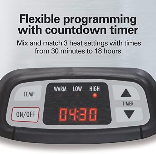 Product 2: Flexible Programming with Countdown Timer. Mix and match warm, low or high heat settings with adjustable programming times from 30 minutes to 18 hours. The convenient countdown timer on the LED display shows you how long until food is ready.
