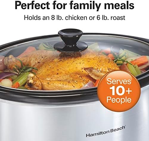 Product 1: SERVE 12+ PEOPLE WITH 10 QUART CAPACITY: Cook a hearty meal for the whole family or serve a delicious main dish for a crowd. The 10 quart capacity slow cooker feeds a gathering of 12 or more people and fits a 10 lb. turkey or 12 lb. roast.