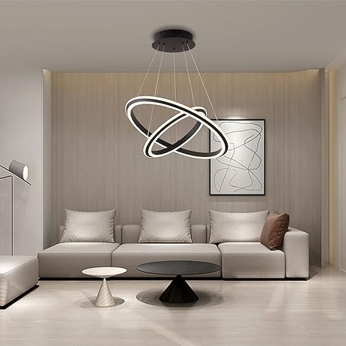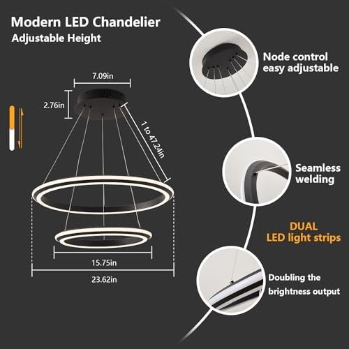 High-Quality & Durable: The 2 ring modern chandelier is made of high-quality aluminum and silicone, with a double-sided light strip, brighter light, finished by powder coating, anti-corrosive and fade-proofed, better heat dissipation