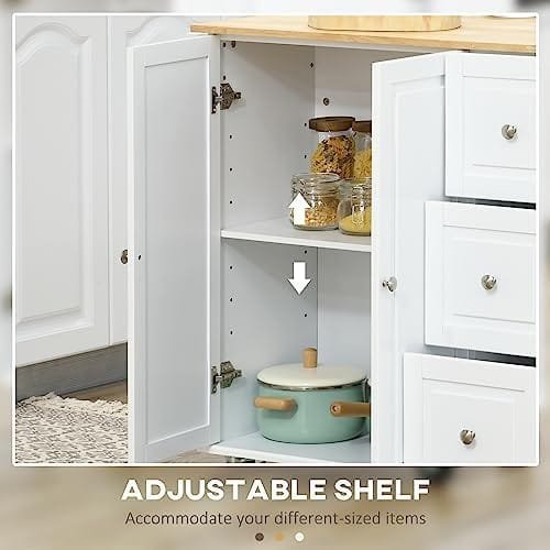 Easy to Move Around: The rolling on-wheels design lets you quickly move your kitchen storage cart around your home. Two of the four wheels lock in place to help keep the kitchen island steady.