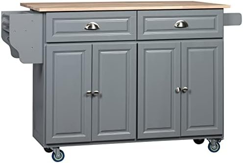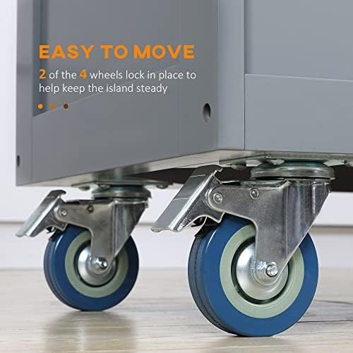 Easy to Move Around: The rolling design on wheels lets you quickly move the butcher block island around the kitchen or your home. 2 of the four wheels lock in place to help keep the island steady.