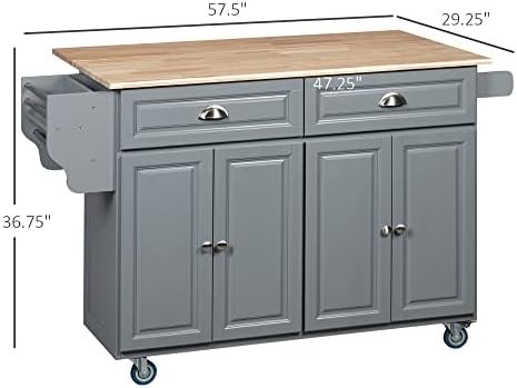 Island for Kitchen Information: Overall Dimension: 57.5″ W x 29.25″ D x 36.75″ H;Top Size: 47.25″ W x 18″ D (large), 47.25″ W x 11.25″ D (small) Weight Capacity: 110 lbs. (total).Assembly required.