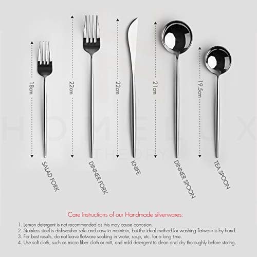 ⭐Easy care- This silverware set is easy to wash and maintain. Clearly a first apartment must haves! Dishwasher safe but for best results, hand wash the stainless steel utensils with warm soapy water and use a soft cloth to dry thoroughly before storing. Do not leave the silverware soaking in water, soup, or strong detergent for a long time. Mild detergent (non-lemon) is recommended while washing.