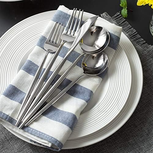 ⭐Sturdy structure & premium quality – This modern silverware set for 4 is made from premium 18/10 stainless steel, they will not corrode, bend, or become tarnished with proper care. Rust-proof with ergonomic handles, this durable stainless steel utensils is designed for long time use. The quality of our silverware collection are something we take great pride in, which is why we are backing it up with a 30-day money back guarantee.