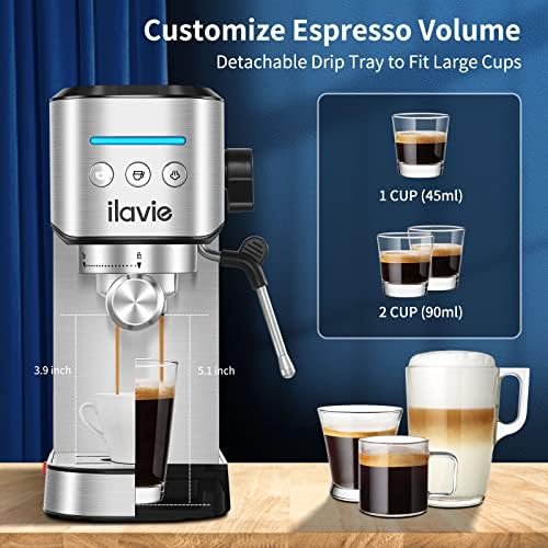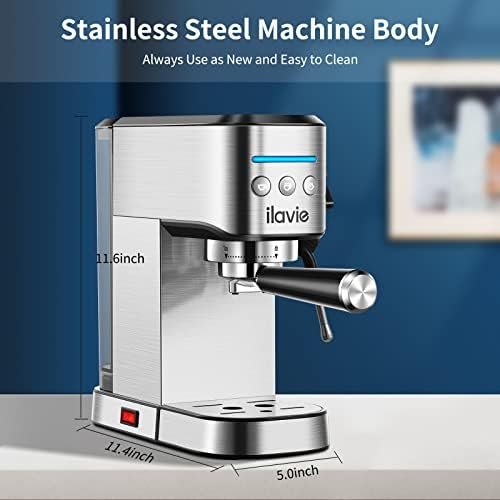 ILAVIE Espresso Machines with Steamer, 20 Bar Pump Espresso and Cappuccino latte Maker, Espresso Machine Easy to Use for Home Barista, 1350W, Stainless Steel