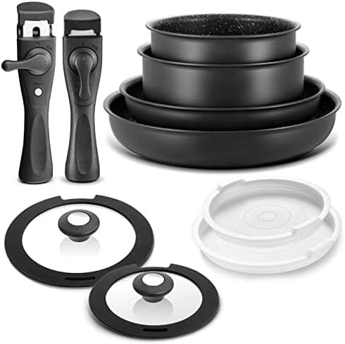 Induction Cookware Set 10 Pieces, Nonstick Pots and Pans Set with Detachable Handles, for All Hobs, Stackable Design, Dishwasher/Oven Safe