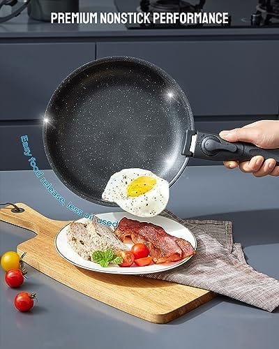 LONG-LASTING COATING – Each pan upgrades premium 3-layer nonstick coating; 3 times more durable than traditional cooking pans for effortless food release.
