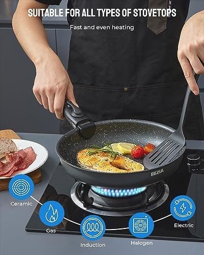 FOR ALL HOBS – Induction, gas, electric, ceramic, halogen; stainless steel composite bottom ensures fast heating; remove the handle pan is oven safe up to 450℉.