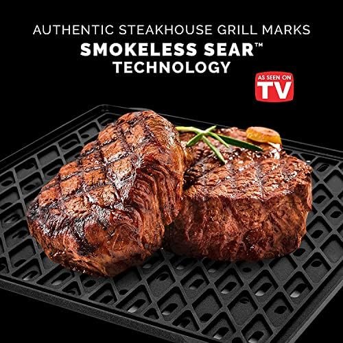 AUTHENTIC BBQ FLAVOR, VIRTUALLY NO SMOKE — Innovative Smokeless Sear technology achieves the authentic flavor and char of an outdoor grill without the smoke and odors; MORE CRUNCH, LESS FAT — Air fryer produces a crunchy golden exterior and moist tender interior with little to no oil, for healthy low-fat results