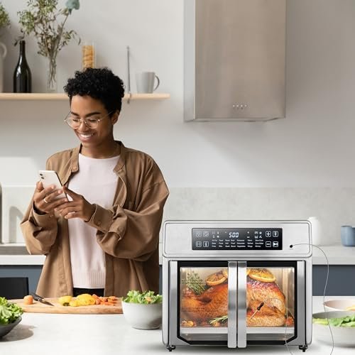 A generous 26-quart capacity and multiple rack levels fit a 14-pound turkey, 12-inch pizza, or up to 9 slices of toast. Bright, bold, intuitive digital display with 21 presets accommodates a variety of menu options, including French fries, chicken wings, shrimp, steak, and vegetables