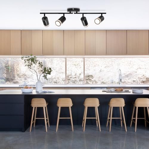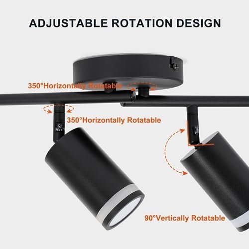 【PIVOTING TRACK HEADS】Each lamp head of the ceiling spotlight can be adjusted independently at 350 degrees horizontally and 90 degrees vertically, and with the adjustable lamp arm, you can freely point the light to the place you need to illuminateen, the power of each GU10 bulb does not exceed 40W