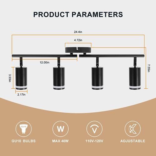 【GU10 SOCKET】This black track lighting fixtures has an standard GU10 bulb base (GU10 bulb not included). Compatible with ordinary LED or halogen bulbs, the power of each GU10 bulb does not exceed 40W. Our LED spot light is perfect for living room, kitchen, bedroom, bar, shop, cafe, gallery, mural, adding modern beauty to your space