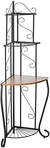 Maximize the space in your kitchen or dining area with this corner Baker’s Rack expertly crafted of black finish metal and walnut finish wood shelves for stylish durability. Features three shelves in a classy pyramid design for baked goods to cool, with an additional fourth shelf on bottom for storage.