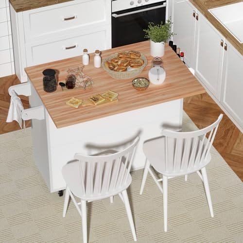【Practical Kitchen Island with Drop Leaf】 Our kitchen islands with storage are made from high-quality engineered wood which is sturdy enough, choosing metal folding tripod at the drop leaf junction to keep it more stable. 43″ x 15.7″ tabletop can be unfolded to 43″ x 27.5″ by the drop leaf design, maximum weight capacity of the drop leaf can reach 30 lbs, so this kitchen island on wheels can be used for 2 as a breakfast table.