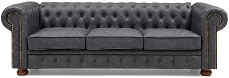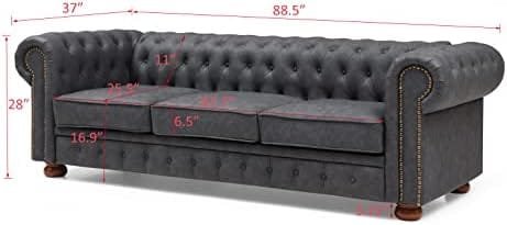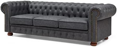 Featuring simple tufted, smooth upholstery, and wooden legs, our sofa offers the look, feel, and design of a truly contemporary piece. Its faux leather upholstery cushions offer a stylish and luxurious feel. This sofa has a classic vintage style that suits any home decor. with a minimalistic yet refined structure, this chesterfield sofa brings out a simplistic style that emphasizes comfort and functionality. matching perfectly with any decor theme, is a great addition to your living room bedroom or office.