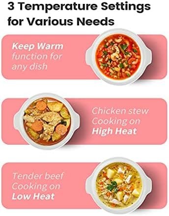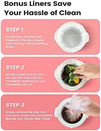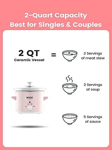 KOOC Small Slow Cooker, 2-Quart, Free Liners Included for Easy Clean-up, Upgraded Ceramic pot, Adjustable Temp, Nutrient Loss Reduction, Stainless Steel, Pink, Round