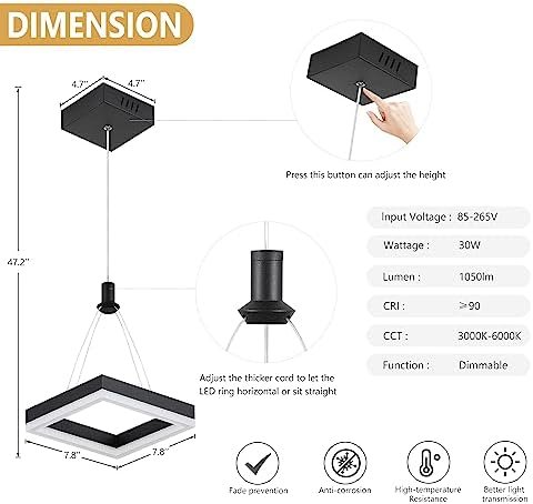 【Easy Installation】Our pendant light comes with a convenient installation pack that includes full accessories and installation manuals to make setup a breeze. Adjust the cable to suit different length requirements and ceiling heights (max adjustable length is 47.2 inches), you can customize it to fit any space in your home or office.