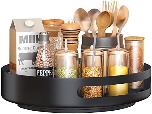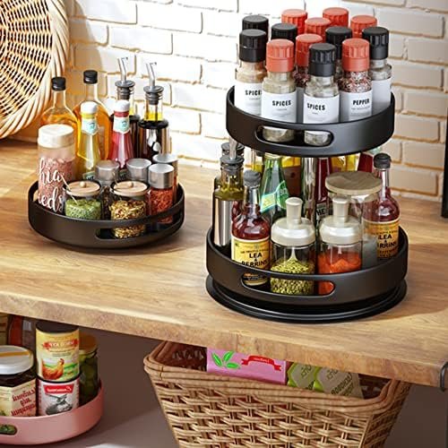 【Versatile Use】The round rotating spice racks is perfect for containing and organizing loose items and keeping them neat and tidy. Great gadget for cabinets, kitchen, pantry, fridge, bathroom, home office, laundry room, garage, craft or hobby room, and more.