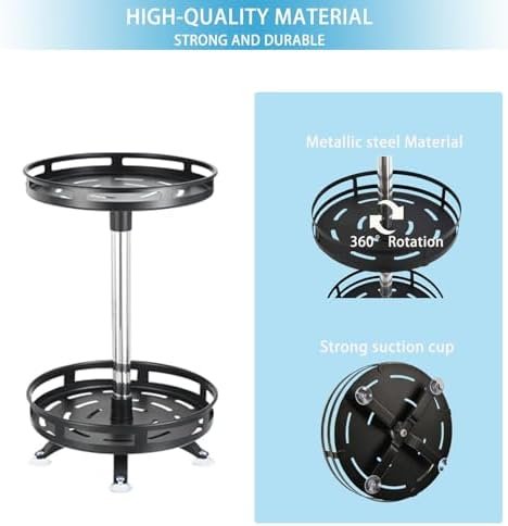 METAL STEEL MATERIAL: The spice rack is made of high-quality metal steel material, which is sturdy and durable, with smooth surface, easy to clean, not easy to rust, and has strong load-bearing capacity. The lazy susan has strong suction cups on the bottom to securely attach to the countertop and prevent sliding.