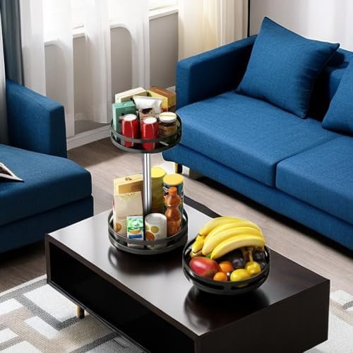 Lazy Susans Organizer 2 Tier Metal Steel, Lazy Susan Spice Rack, Rotating Spice Racks for Pantry Cabinet Cupboard Table, 10.23 inch, Black