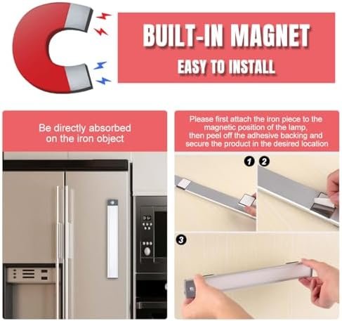 2、★【EASY TO INSTALL】Built-in Magnet to Stick on Any ironwork: This wireless motion sensor closet light can stick on any ironwork, or you can use the included adhesive tape to tape and iron sheet to stick on any non-iron article surface. When need charge or change place, you can the take closet light off anytime.