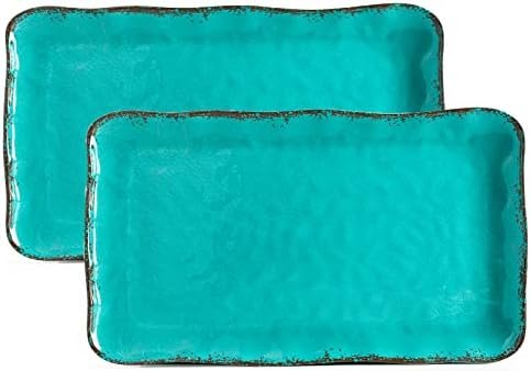 WONDERFUL DESIGN:This rectangular tray with a subtle textured design and organic shape, the platter has a ceramic look and feeling, but it is lighter than ceramics, a bit heavier than plastic, sturdy and more scratch, it will look great on any table, this platter can go perfectly with our vintage dinnerware set, pairs perfectly with any existing home and kitchen décor