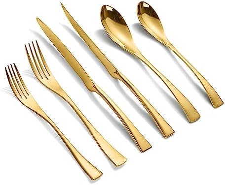 【 HIGH-QUALITY 】 Crafted from Durable 18/10 Stainless Steel, very thick and heavy, will Never Rust or Bend like some cheaper flatware sets. And vacuum plasma coated with the Food-Grade precious metals on its surface let this cutlery set presenting Imperial Noble Temperament, very Healthy, Attractive and Durable!