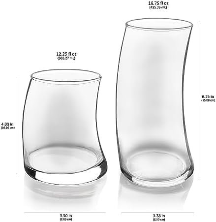 One of the most fun and edgy glass sets Libbey has ever produced – the cheeky curved shape is a surefire conversation starter! Great value; serves a variety of purposes and turns everyday occasions into special events Includes 8, 16.75-ounce cooler glasses and 8, 12.25-ounce DOF glasses; due to the glass-making process for this item you may notice a seam in the glass, this is typical and does not affect quality Durable and dishwasher safe for quick, easy cleanup; to help preserve your products, please refer to the Libbey website for care and handling instructions