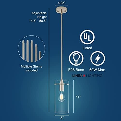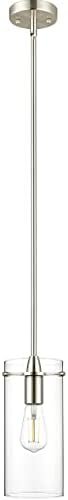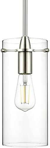 COMPATIBLE WITH MOST STANDARD MEDIUM BASE BULBS – This brushed nickel kitchen pendant light fixture comes with medium clear glass shade that has a diameter of 4.87″ and a height of 11″