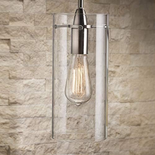 The Effimero large modern glass hanging pendant light fixture makes a dramatic design statement. The industrial farmhouse light design features a clear cylinder pendant light shade and metal hardware. The adjustable height Effimero hanging ceiling light blends with many decor styles and is perfect as pendant lighting for kitchen island, over kitchen tables and counters, as a dining room light, hallway or bathroom pendant lighting.