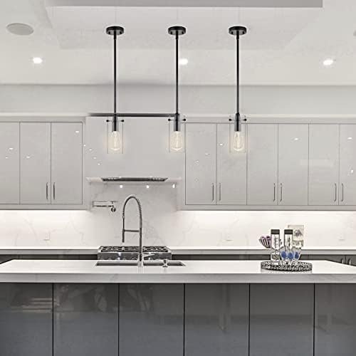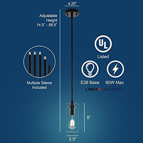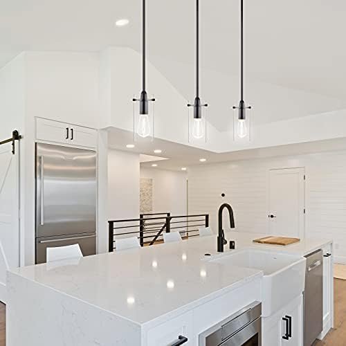 COMPATIBLE WITH MOST STANDARD MEDIUM BASE BULBS – This matte black kitchen pendant light fixture comes with medium clear glass shade that has a diameter of 3.5″ and a height of 8″