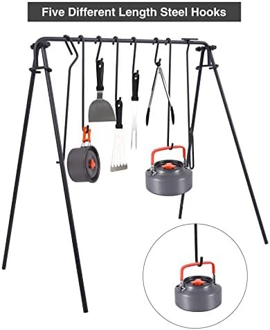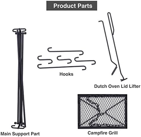 【Easy to Use】 Equipped with multiple length hooks and an adjustable grate grill to hang camping cookware or any other items. The outdoor cooking equipment can be easily set up in a short time. You can start a cooking at anywhere you want easily.