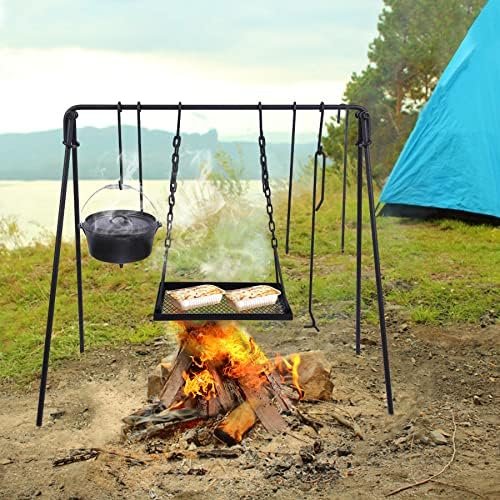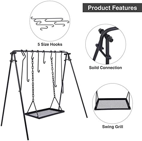 【Safe and Stable】This campfire grill swing is designed with a stable A-type tripod structure design, which is very stable. It can be used in different terrains such as beach, concrete, or grass. Perfect for camping,backyard cookouts, picnics, or bonfire parties.
