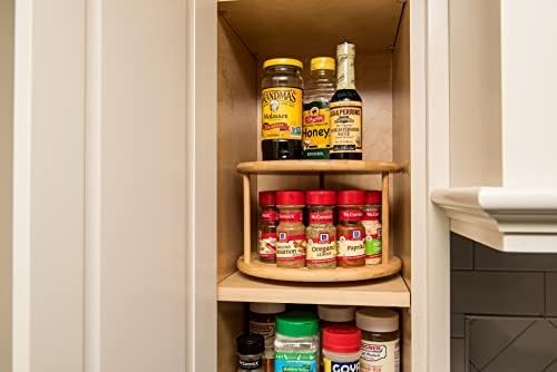 Organize your cabinets with the Bamboo Turntable. Crafted from bamboo, it features an understated design with a neutral natural finish. The 2 tier turntable provides the maximum of easy-glide, revolving storage space and sits perfectly on any styled tabletop. The turntable is great for organizing spices and condiments in your kitchen, and can be placed on your counter or in your cupboards.