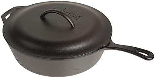 Lodge L10CF3 Cast Iron Covered Deep Skillet, Pre-Seasoned, 5-Quart, Black