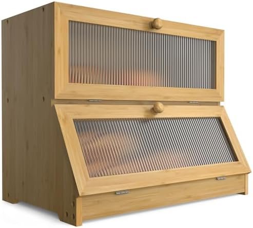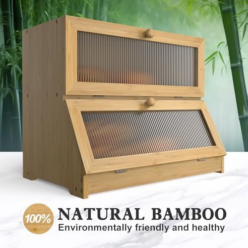 LARGE CAPACITY:Our bread box measures 16*10*13 inches. Double Layer design provides more storage space while not occupying limited counter space.