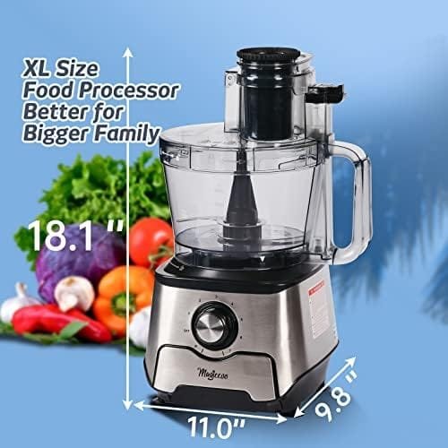 【Large feeding chute】 Save time and effort by using the large feeder chute of the Magiccos 14 cup food processors to process medium-sized vegetables and blocks of cheese without cutting them into smaller pieces.
