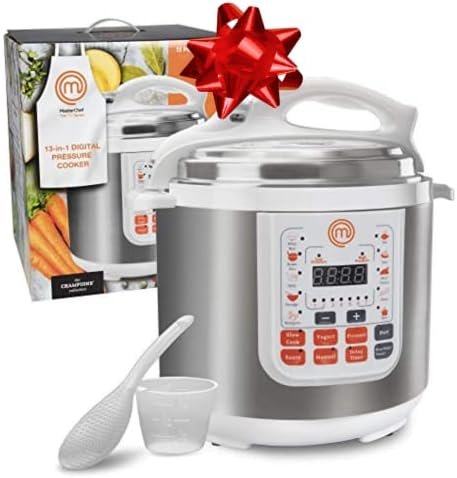 MasterChef 13-in-1 Pressure Cooker- 6 QT Electric Digital Instant MultiPot w 13 Programmable Functions- High and Low Pressure Slow Non-Stick Pot Cooking Warmer Options, LED Display, Delay Timer, Rice